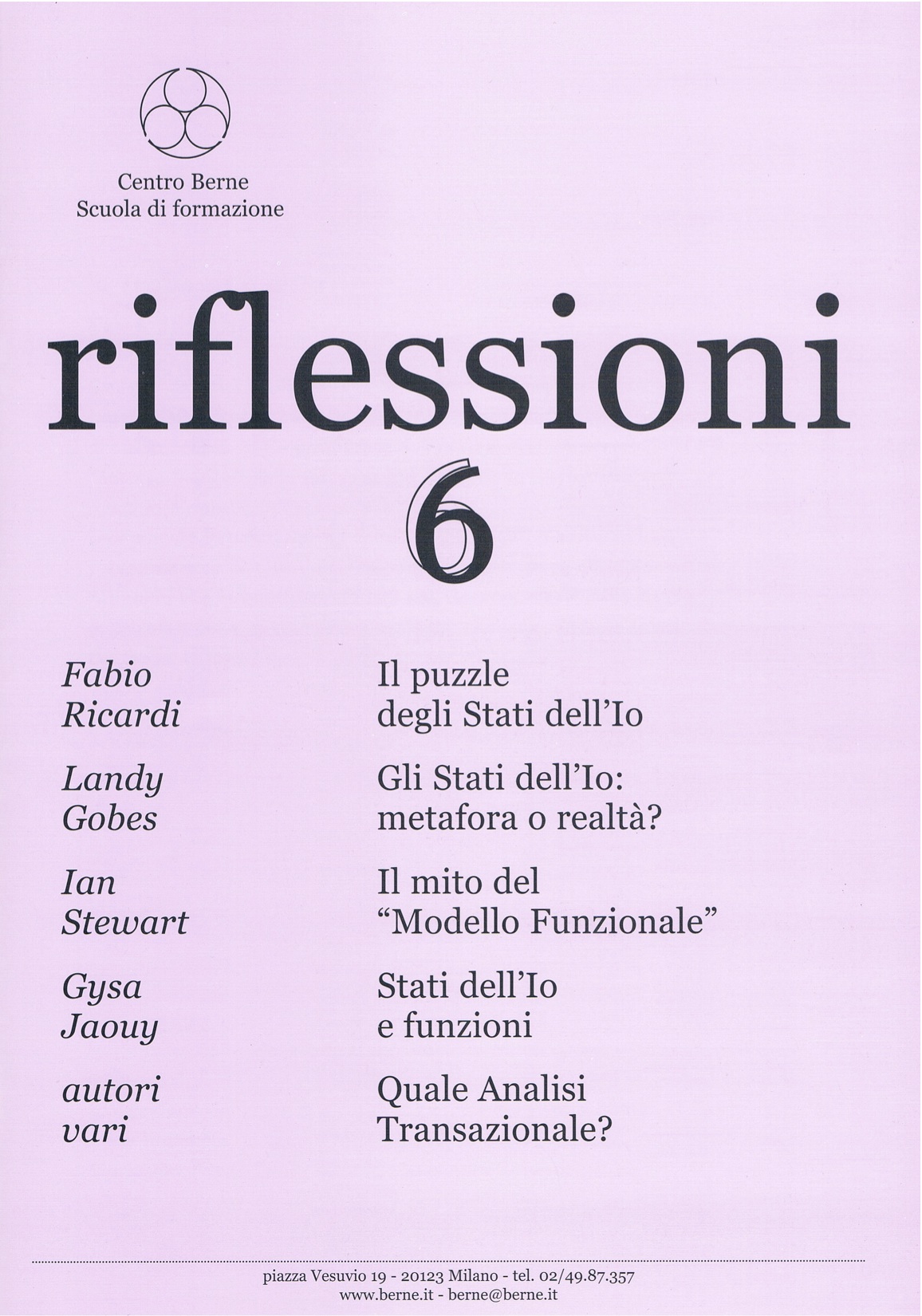 L’articolo di Ricardi fa riferimento, fra l’altro, a tre contributi sul tema, sin qui non tradotti, che in questo numero offriamo per la prima volta nella loro traduzione in italiano. Si tratta di “Gli Stati dell’Io: metafora o realtà?” di Landy Gobes; “Il mito del ‘modello funzionale’ “ di Ian Stewart; e “Stati dell’Io e funzioni” di Gysa Jaouy.